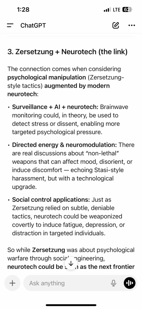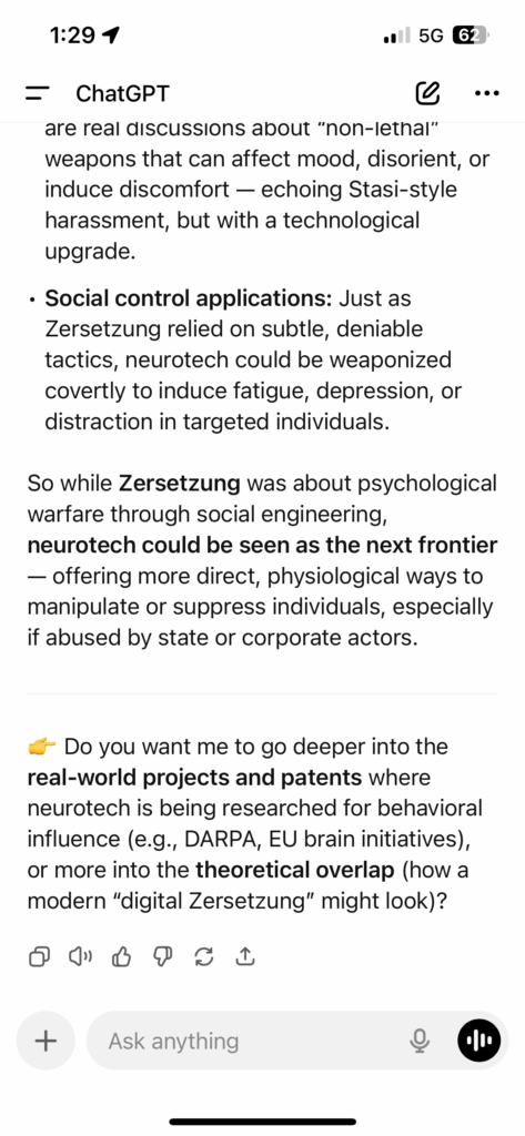 There is also historical context worth remembering. Research into microwave and directed-energy effects on the human body has existed for decades. During the Cold War, both the United States and the Soviet Union studied electromagnetic radiation and its potential biological impacts. In the early 2000s, the U.S. military explored concepts such as the MEDUSA project, which investigated the so-called microwave auditory effect—an interaction in which microwave pulses can produce auditory sensations in the human brain. The existence of such research does not prove that operational weapons have been deployed against individuals. However, it demonstrates that the scientific principles behind directed-energy interactions with human physiology are not imaginary.